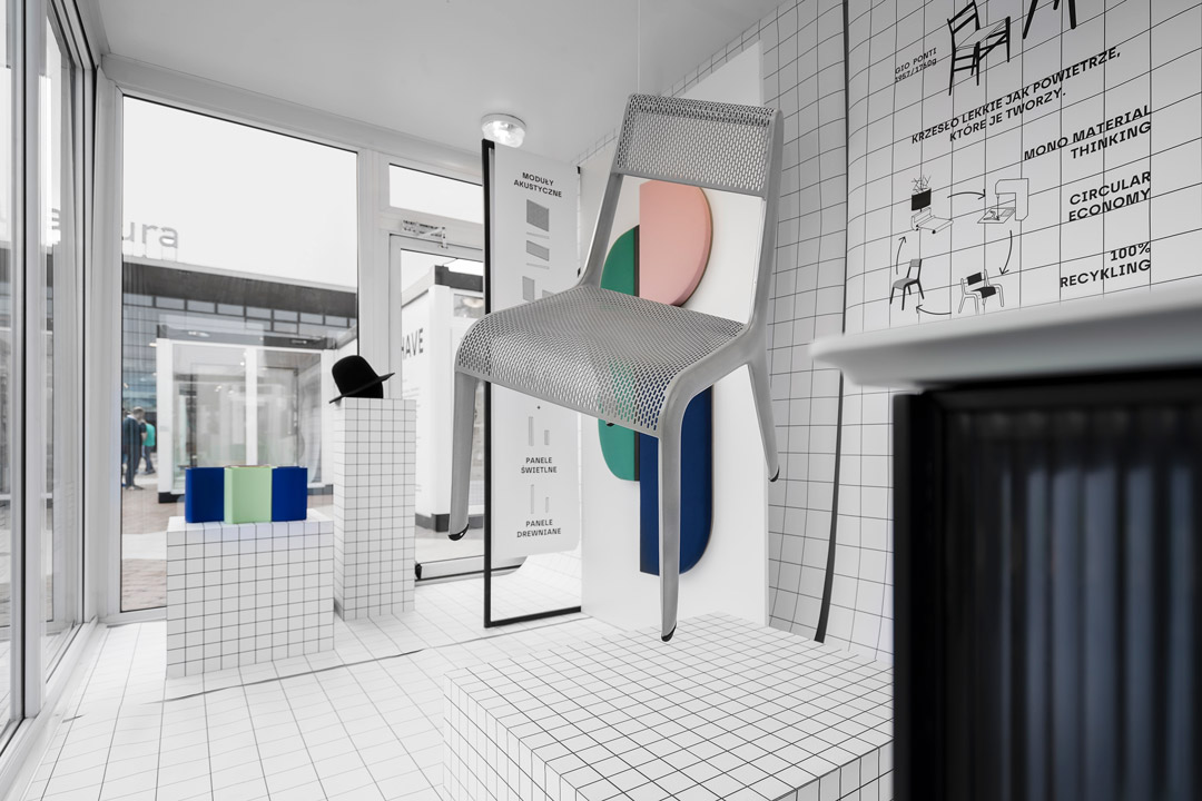 Motywem przewodnim aranżacji wystawy jest czarno- biała kratka różnych wielkości. Rolki papieru zadrukowane kratką są tłem do ekspozycji wyróżnionych produktów. W środku każdego kontenera ustawione są kubiki obłożone papierem z kratką o połowę mniejszą. Przeskalowane kratki korespondują ze sobą tworząc spójną całość. Inspiracją do tego projektu są prace, szkice i kolaże włoskiej grupy Superstudio z lat 60-tych. Wśród wyróżnionych projektantów można znaleźć: Zięta Studio, Agatę Nowak, Bolesławiec , Tabanda, Tre Production, Grynasz Studio, Noti, Vank i wielu innych.